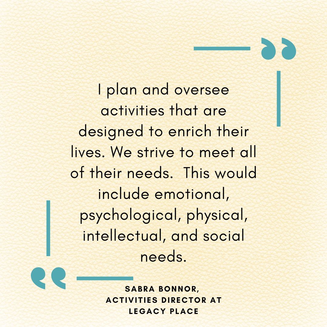 For ideas on how you can plan activities for older ones, have a look at our blog: https://www.legacyplace.org/senior-care/importance-of-planning-activities-for-older-ones/